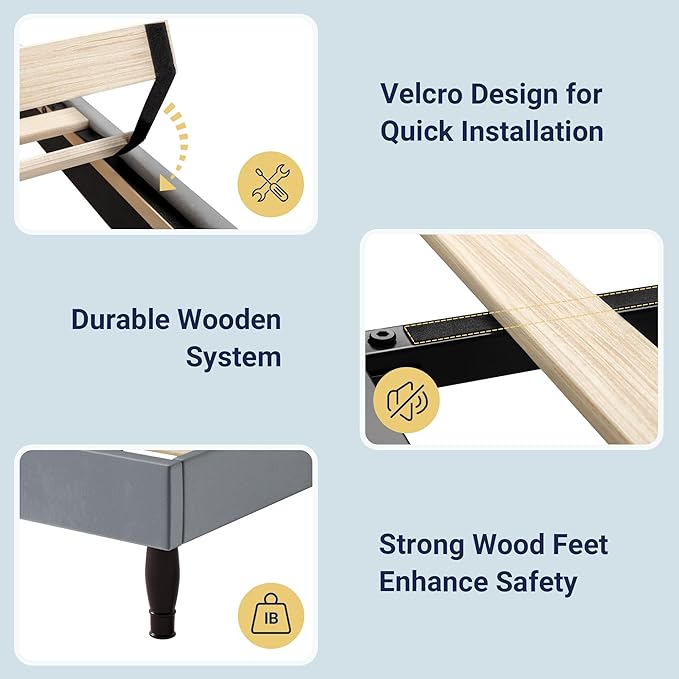 - No Box Spring Needed: With velcro wooden slats provide even easily assembled, also to prevent your mattress from slipping, provide reliable support for your mattress without the need for a box spring. Weight capacity: 1000 Lbs.