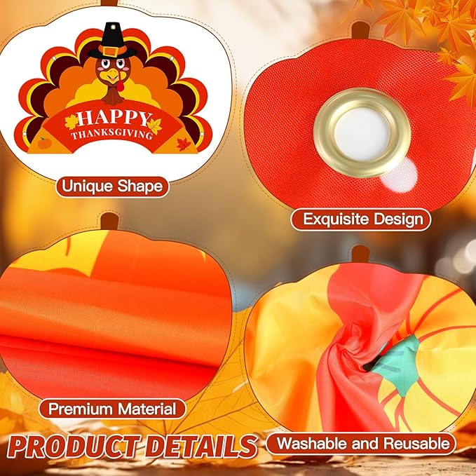 - High Quality Material: These Thanksgiving door decorations are crafted from 100% premium polyester fabric, boasting a smooth surface and excellent durability. Additionally, they’re lightweight, washable, reusable, and foldable—easy to store and carry.