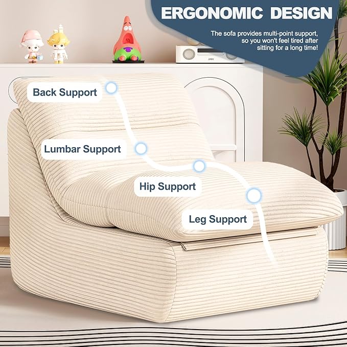 - 【Ergonomic Comfort Design】This floor Lounge sofa prioritizes your comfort with a thoughtfully engineered ergonomic design that delivers exceptional support to your neck, back, lumbar area, hips, and legs. The high-resilience foam filling conforms to your body’ scontours creating a comfortable seating experience.