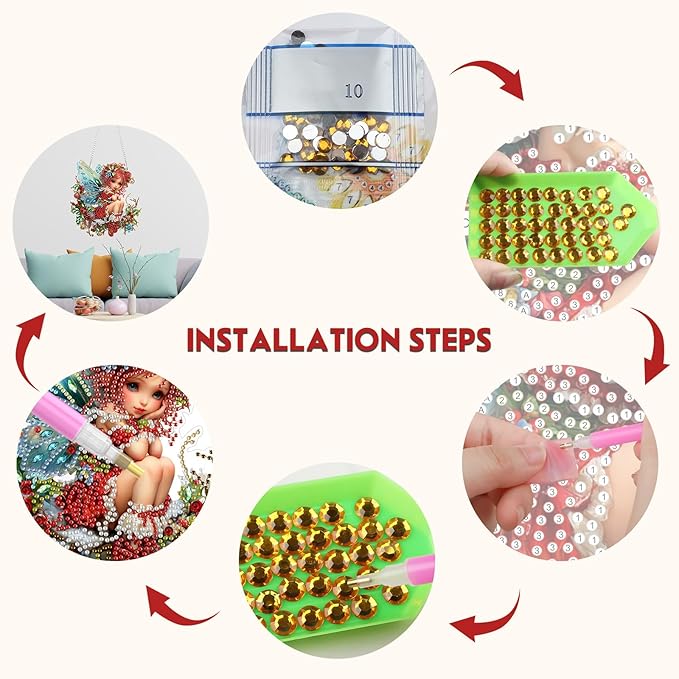 - Simple to Use: Each section is marked with easy-to-follow symbols that match the diamond colors. Just match the numbers and stick the diamonds to create a unique and eye-catching gem painting
