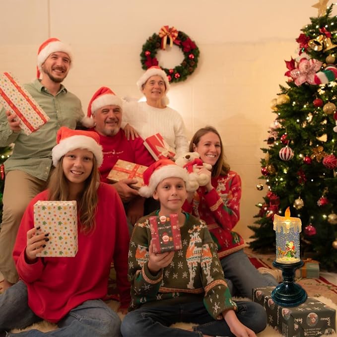 Flameless Snow Globe Candle Light Christmas Santa Decoration with Swirling Water & Glitter, Spinning LED Candles for Home, Tabletop, Holiday Decor