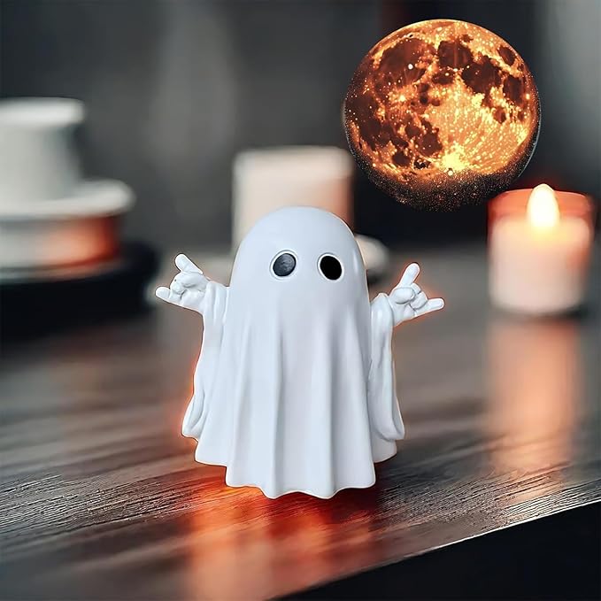 - Design: A ghost statue with a rock gesture, made of glossy resin material, presenting a sleek and eye-catching appearance. A perfect blend of spooky and stylish for music lovers and Halloween enthusiasts.