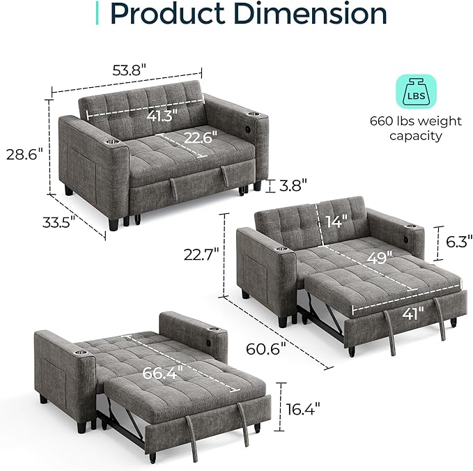 - Sturdy and Durable Construction: Rely on the robust construction of our futon sofa, featuring a sturdy wooden and metal frame with maximum capacity 660LBS. The smooth-running metal pull-out mechanism ensures durability and ease of use
