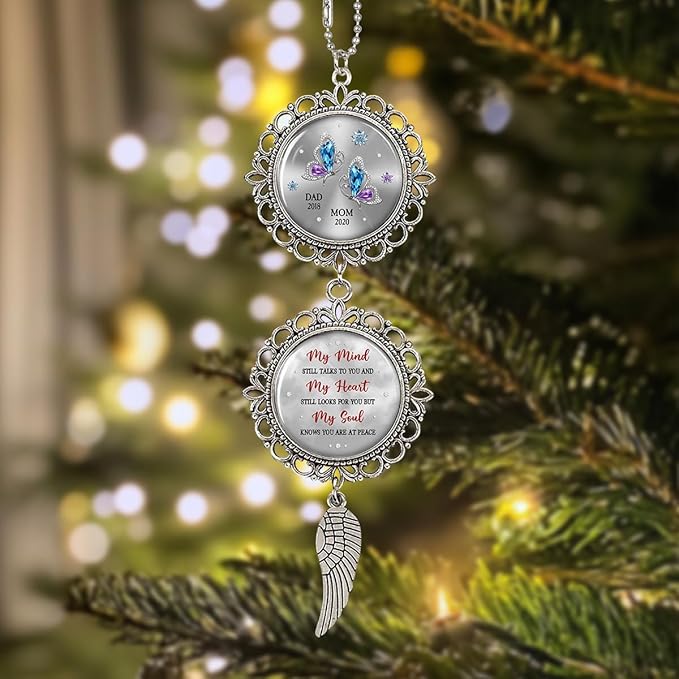 Memorial Car Rearview Ornament with Custom Names - My Mind Still Talks to You with Wing Charm Christmas Ornament Car Mirror Hanging Accessories Grieving Remembrance Sympathy Gift for Loss
