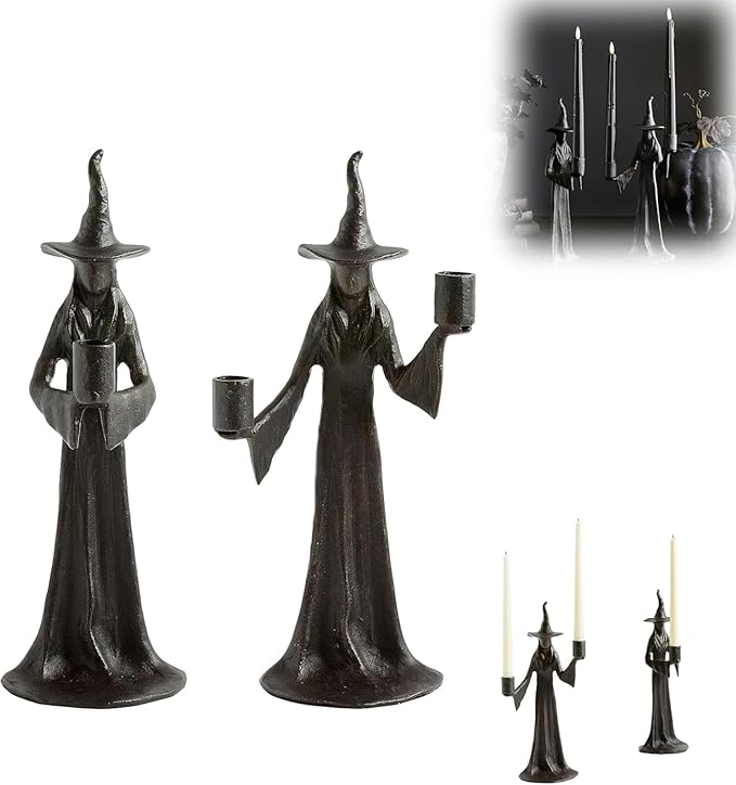 - 【Striking 7.8-Inch Design】Standing at 7.8 inches tall, this witch candle holder makes a bold statement on mantels, tabletops, or Halloween party displays, casting a spellbinding presence in any space.